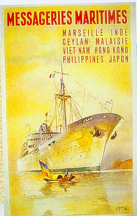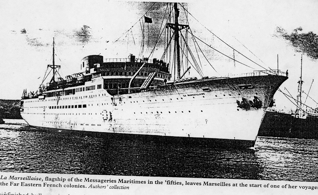 On April 18, 1949, La Marseillaise made its first cruise, heading towards Indochina. On September 5th, the ship reached Saigon. Luxuriously designed and equipped with powerful 31,000 hp engines, "La Marseillais" could reach 20 knots. She became the flagship of the company. 536 feet long, 75 feet wide, it could hold 341 passengers in first class and 302 passengers in economy.