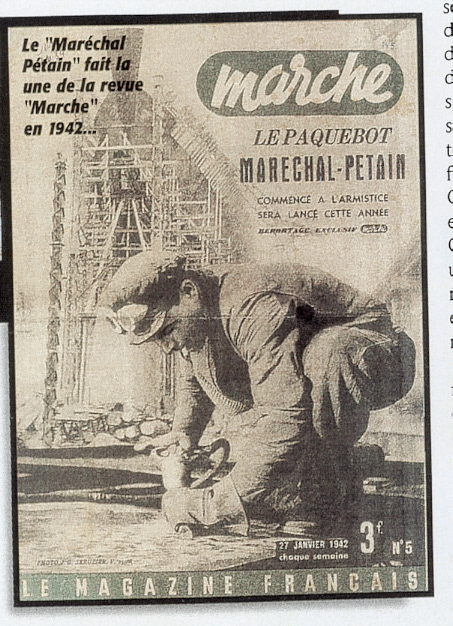 During the collaborative period, the Vichy government and the German authorities named the liner Marechal Pétain. Marechal, here we are! You, the savior of France! Pom ... popom! And it was with these pompous and nauseating innuendos that on June 10, 1944, this great modern liner was launched... two days after the landing of Normandy!