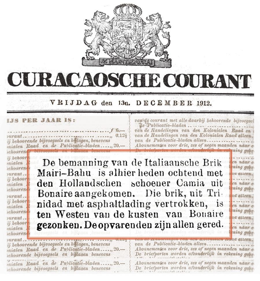 In December 1905, the ship docked in the port of Kralendijk, Bonaire. The reputation of Captain L. Razeto and his merry band of bandits preceded him and the Bonaire harbormaster ordered the ship out of the harbor.